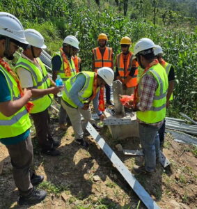 We are pleased to share a significant milestone in the progress of the Amarpur-Dhungesaghu 132 kV Transmission Line Project, an important undertaking by the Nepal Electricity Authority (NEA) under its Transmission Directorate – Grid Development Department. On 22nd May 202], the tower erection phase was officially launched with a traditional Coconut Breaking Ceremony, symbolizing an auspicious and safe beginning to this crucial phase of work.